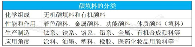 本文為了統(tǒng)一說法,我們將這兩者統(tǒng)稱為顏填料,可以按以下方式對(duì)顏填料進(jìn)行劃分。