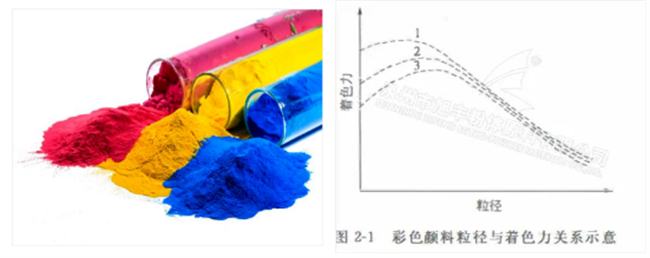 一般顏料著色力越大,著色劑用量越小,著色成本越低;著色力一般隨著顏料的粒徑減小而增加,當(dāng)粒徑降低到一定程度后,其著色力會(huì)因粒徑減小而減少,所以存在著使著色力更強(qiáng)的最佳粒徑。