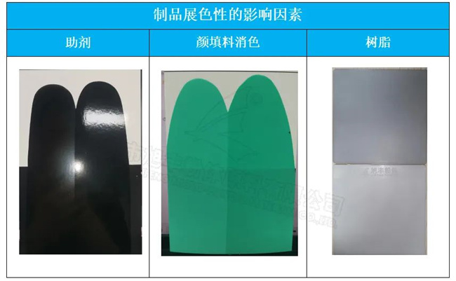 在有色制品生產(chǎn)制備時(shí)可盡可能使用低消色的白色顏填料以及相容性較優(yōu)異的助劑以期達(dá)到降本增效的優(yōu)異展色作用。