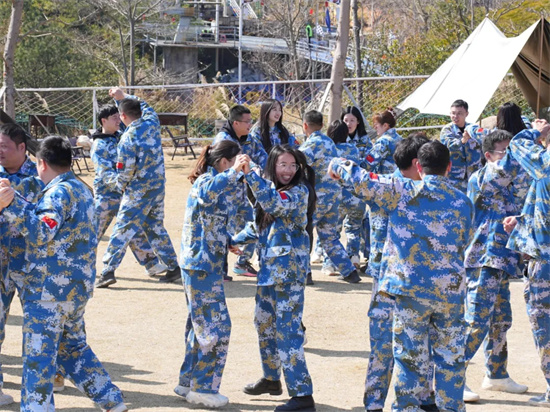 在進(jìn)行運(yùn)轉(zhuǎn)乾坤拓展項目前,大家在動感的音樂中盡情熱舞,歡聲笑語回蕩在場地,每個人臉上都綻放著燦爛的笑容。