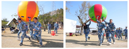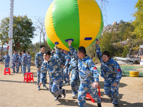 隨后的“運(yùn)轉(zhuǎn)乾坤”項目,巨大的充氣球需要團(tuán)隊成員共同發(fā)力,協(xié)調(diào)步伐才能快速前進(jìn)。