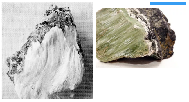 石棉屬于硅酸鹽類礦物,分子式Mg6(Si4O10)(OH)8,含有氧化鎂、鋁、鉀、鐵、硅等成分。石棉多數(shù)為白色,也有灰、棕、綠色;呈纖維狀集合體,具有絲絹光澤。石棉可以分為角閃石石棉和蛇蚊石石棉兩類,蛇紋石石棉又稱溫石棉,它是石棉中產(chǎn)量最多的一種,具有較好的可紡性。角閃石石棉又可分為藍石棉、透閃石石棉、陽起石石棉等,產(chǎn)量比蛇紋石石棉少。石棉在工業(yè)時代廣泛用于制造業(yè),但由于其對人體的危害,逐漸被很多國家用替代品代替甚至禁用。